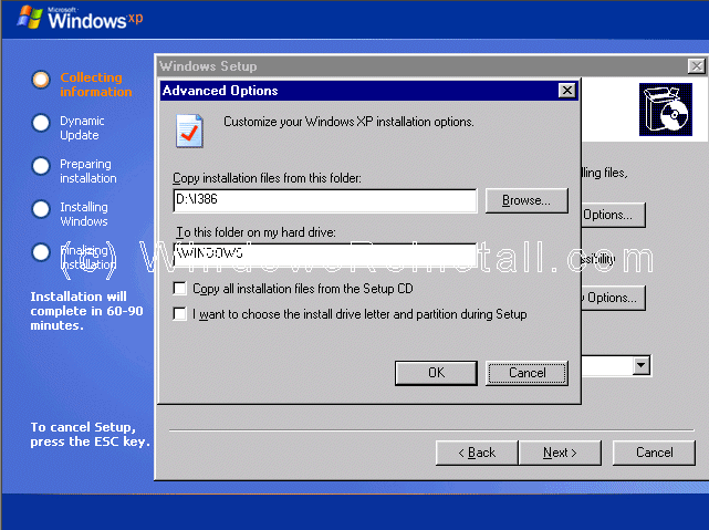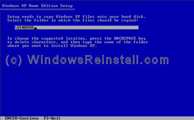 "\WINDOWS", change this to "\WINXP" (or whatever you want)